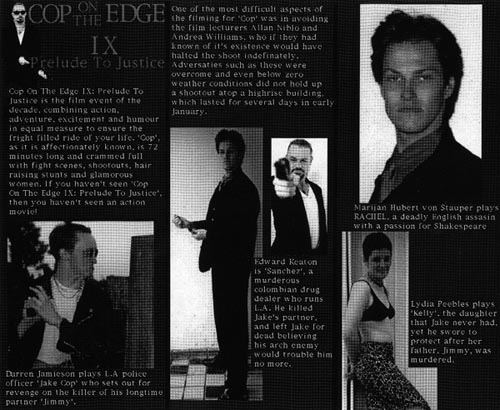 Luckily, with modern home technology the way it is today, we now have DVD copies of Cop on the Edge too. These DVD copies were produced by Eddie Keaton, who resampled the original Beta master of Cop for the process. The DVD copies have many of the same special features as the original VCDs, complete with some new, DVD exclusive, features.